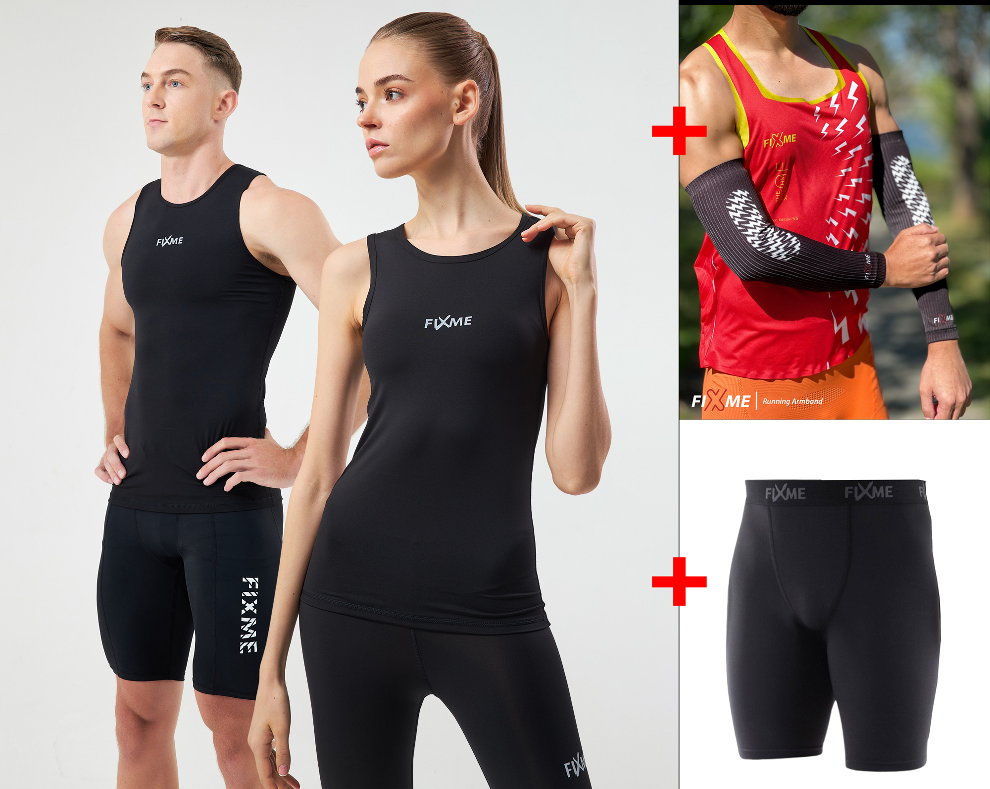 เสื้อรัดรูปแขนกุด + ปลอกแขน + ขาสั้นรัดกล้ามเนื้อ = รักษาอุณภูมิให้คงทีช่วยกันหนาวได้อย่างมีประสิทธิภาพ