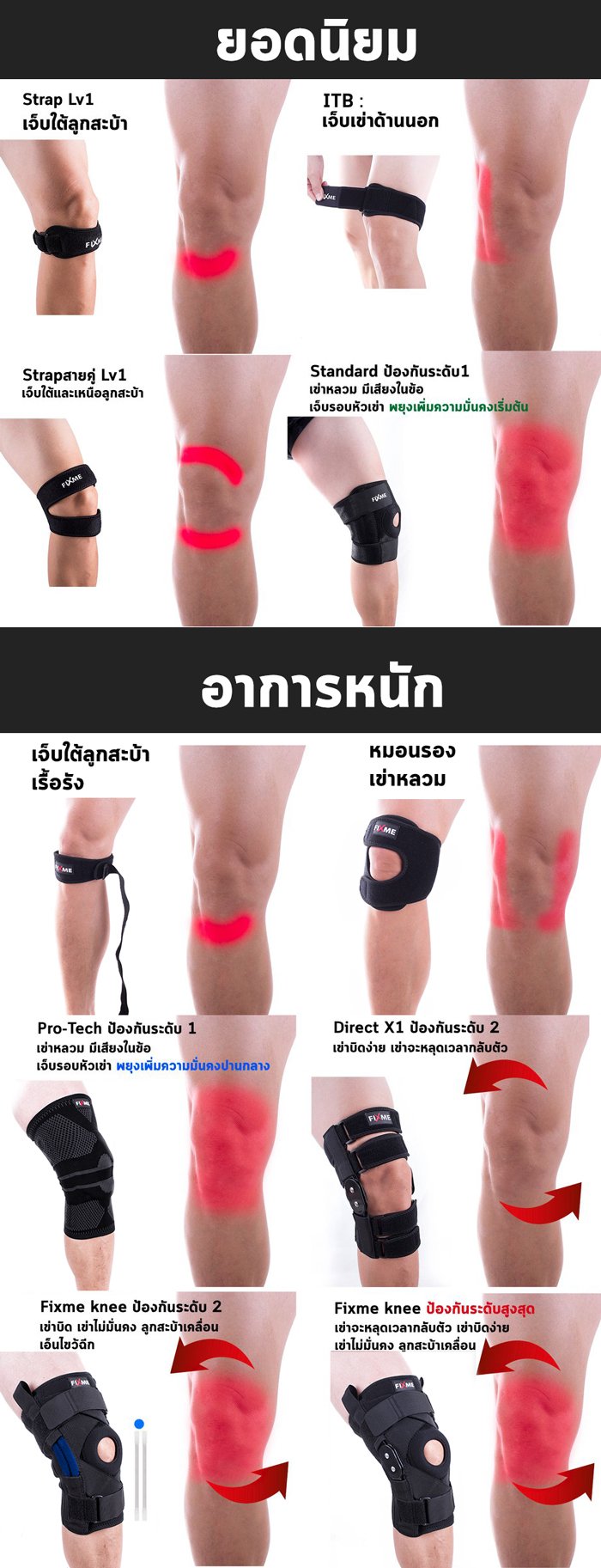 สุดท้ายเพื่อประสิทธิภาพสูงสุด เลือกปลอกรัดพยุงเข่าให้เหมาะกับอาการบาดเจ็บเท่านั้น