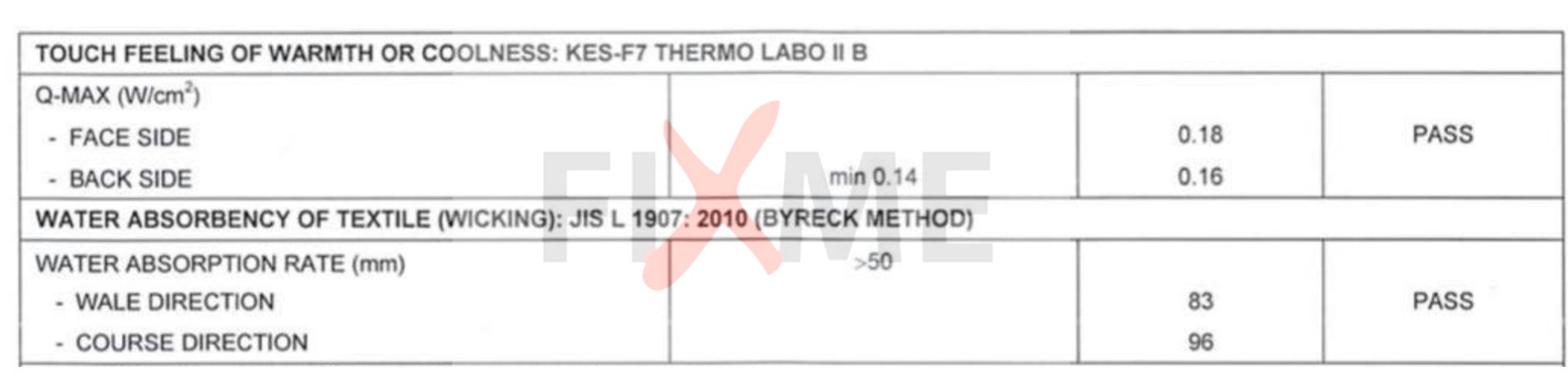 ผ้าFixme ได้ผล 0.16 - 0.18 w/cm2 ผ่านมาตรฐานQmax Warm / Cool Touch