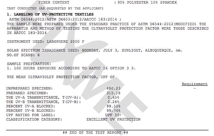 การป้องUV ระดับสูงสุด UPF 50+ หรือ UVA-B 99%